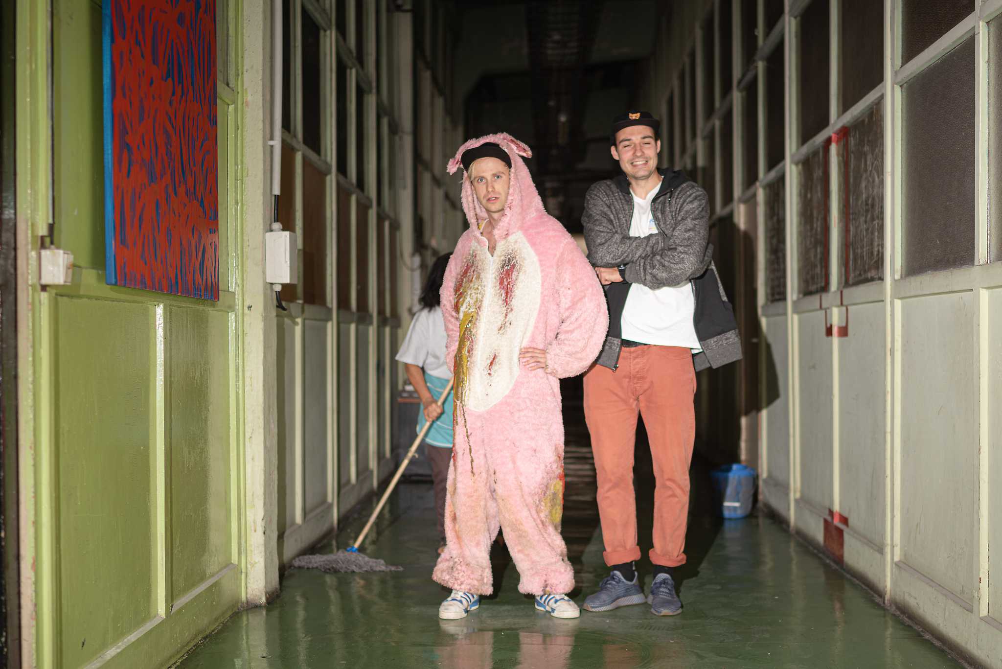 Pod názvem Mutanti hledaj východisko vystupují dva spolužáci z pražské DAMU, rapper a textař Jan Vejražka a Jiří Konvalinka, který má na starost instrumentální složku (známý je též jako hráč na elektrifikované housle ve formaci Vložte kočku). Živě publikum oslovují také osobitou pódiovou prezentací ve speciálních mutantích kostýmech.