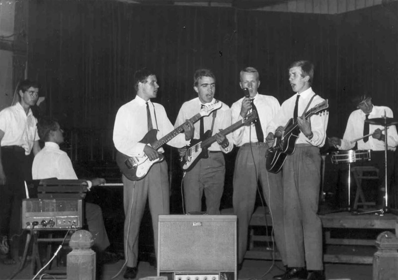 | Synkopy 61 | Brněnská skupina působí s přestávkou v devadesátých letech od roku 1960. Skupino založil kytarista Petr Směja ve svých čtrnácti. Dále v ní hráli bubeník Jiří Rybář, Pavel Pokorný - v té době houslista a Jan Čarvaš, kontrabasista (od r. 1961) spolu hráli až do sezóny 1980/81, kdy skupinu opustili Čarvaš a pak Směja, zbylí členové jen pozměnili název a pokračovali dál. Skupinu pojmenovali Synkopy a každým rokem měnili vročení za názvem (Synkopy 62, 63...). Zpočátku hráli běžné populární a taneční hity, v roce 1964 však začali hrát big beat.